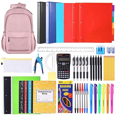 88 Pcs Back to School Supplies Kit with Backpack for High School College Students School Supply Box Essential Learning Tools Supply Box for Senior Students Teachers Includes Calculators Pink